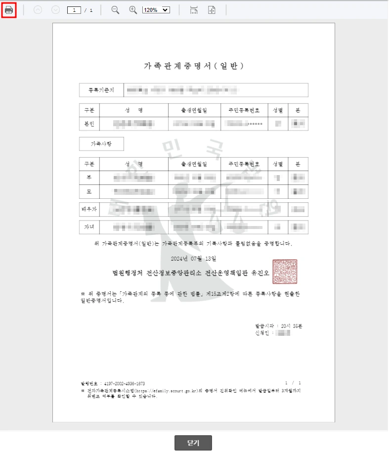 가족관계증명서 인터넷발급( 정부24 빠르고 간단하게)