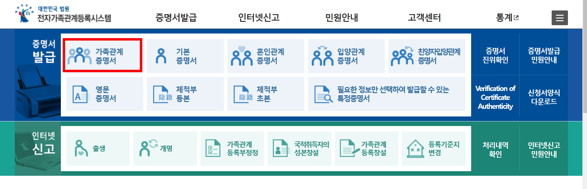 가족관계증명서 인터넷발급을 가장 쉽게 할 수 있는 방법은 대한민국 법원 전자가족관계등록시스템에서 발급하는 방법입니다. 클릭 몇 번이면 손쉽게 발급가능합니다.