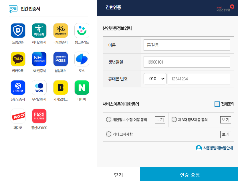 - The 건강보험 모바일 앱을 다운로드 후 설치합니다.