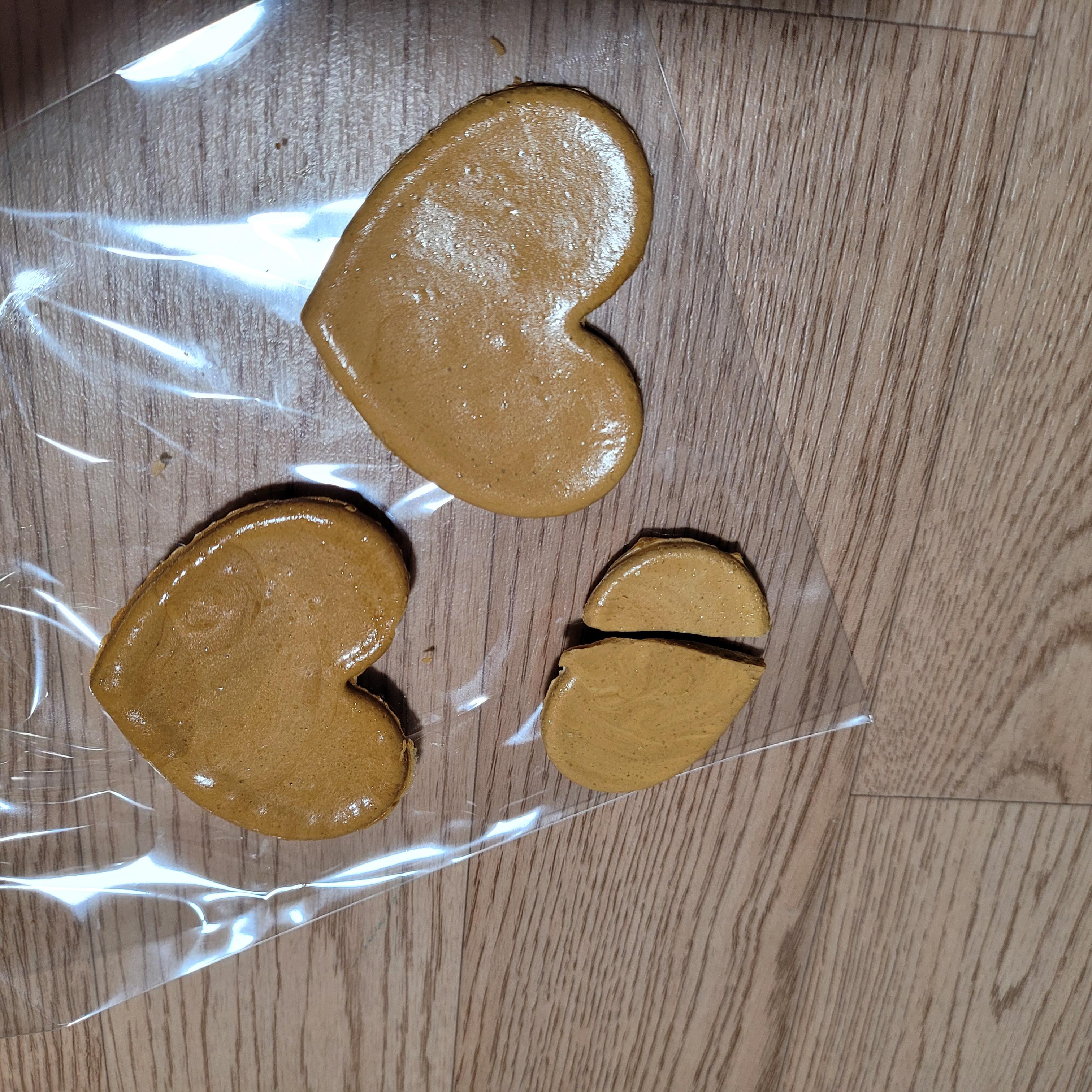 2. 부풀어오른 달고나를 평평한 면에 붓고, 원하는 모양의 틀로 눌러줍니다.