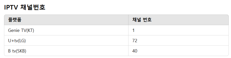 • ENA: IPTV, 케이블, 위성방송을 통해 실시간 시청 가능.
