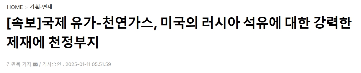 미국은 러시아의 주요 석유 및 가스 기업과 이와 관련된 해운, 금융 시스템에 강력한 제재를 발표했습니다. 이에 따라 국제 유가와 천연가스 가격이 급등세를 이어가고 있습니다.