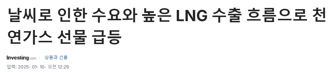 - 2월물 천연가스 선물 가격: 100만 BTU당 3.976달러 (+7.43%)