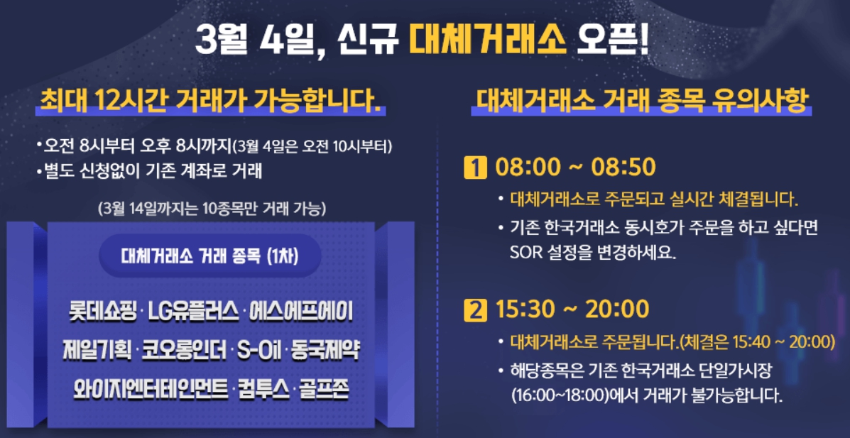 기존 정규장과는 다른 거래 시간이 적용된다.