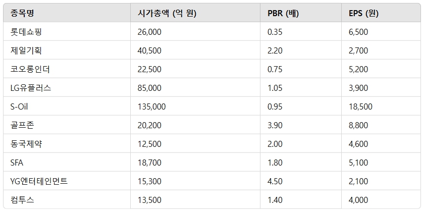 ✔ PBR이 낮은 롯데쇼핑, 코오롱인더는 현재 저평가된 상태로, 반등 가능성이 있는지 살펴볼 필요가 있음.