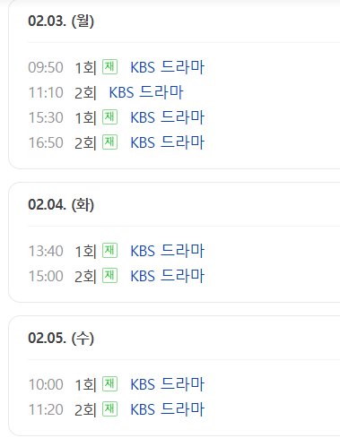 - 방영 기간: 2025년 2월 1일 ~ 2025년 7월 20일(예정)