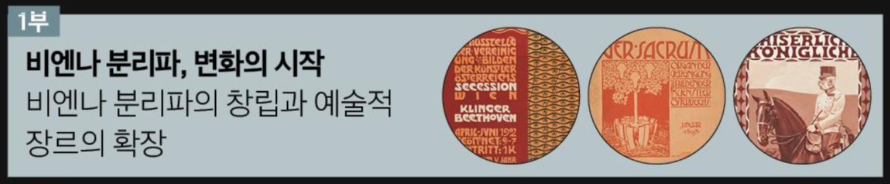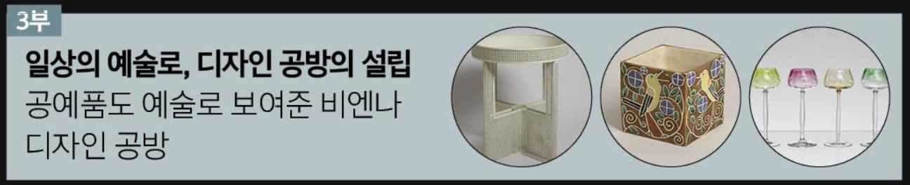- 1부 ~ 3부: 비엔나 분리파의 역사와 이념, 디자인 공방 소개