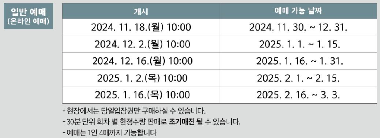 - 예매 방법: 온라인 예매는 티켓링크 예약을 통해 가능합니다.