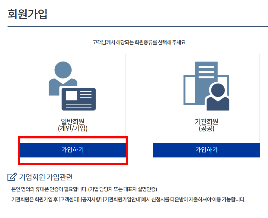 서비스 이용을 위해 사업자 대표 명의의 공동인증서(구 공인인증서) 또는 간편인증을 활용해 로그인해야 한다. 만약 기존에 가입한 계정이 없다면, 간단한 절차를 통해 회원가입을 먼저 진행해야 한다.