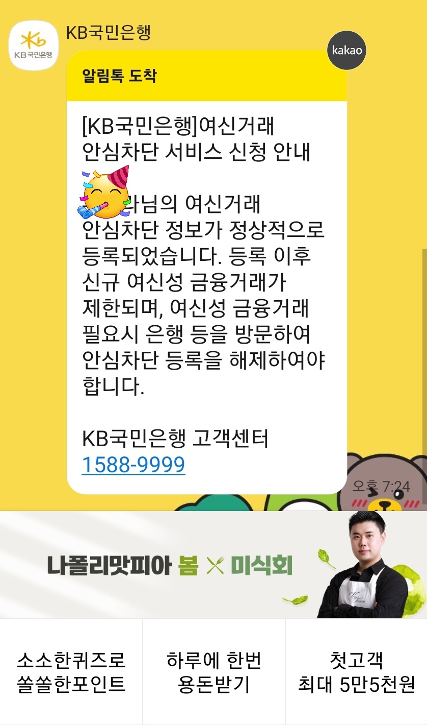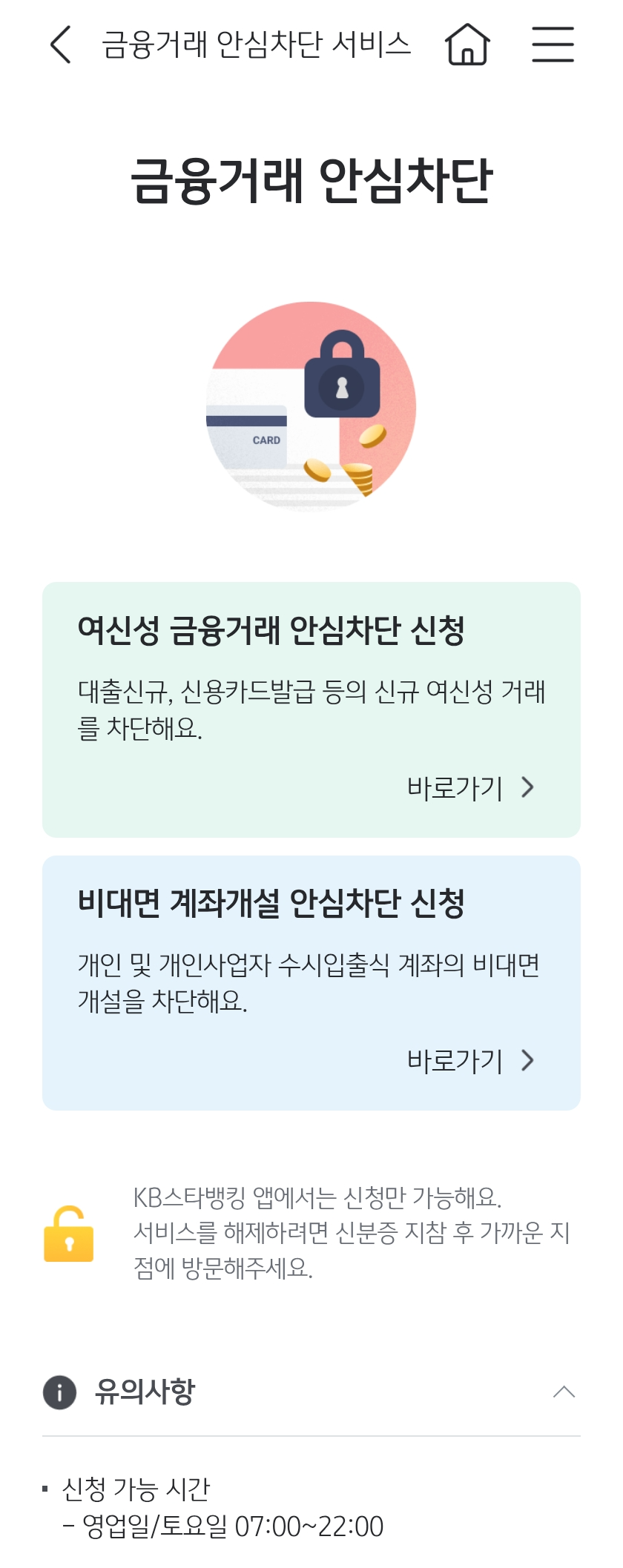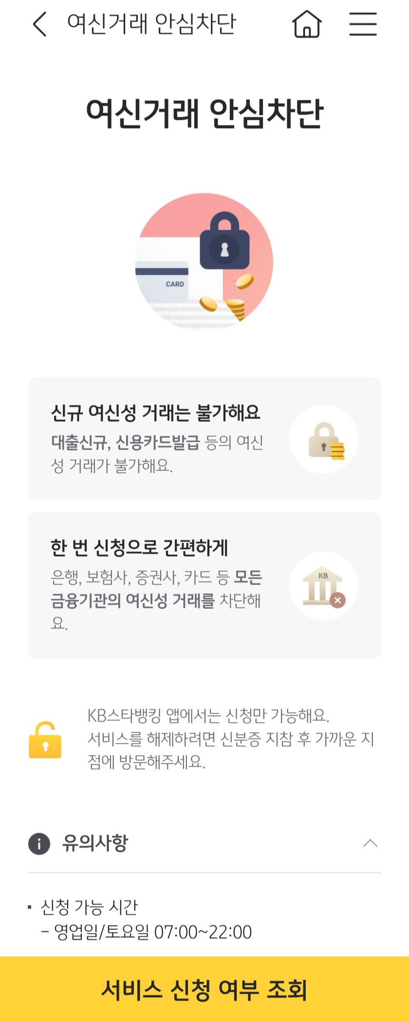 다음으로, 여신 거래 차단 서비스도 꼭 알아두세요!