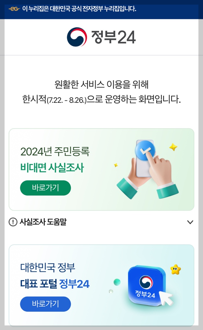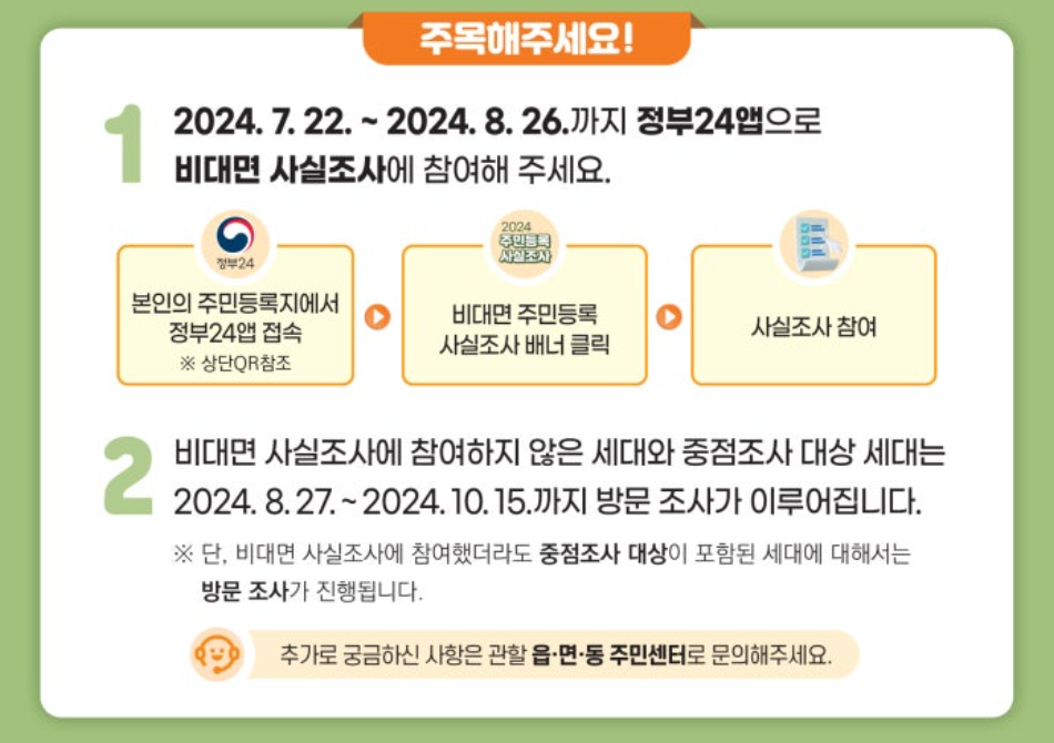 비대면 조사(정부24) : 24. 7. 22(월)~ 8. 26(월)