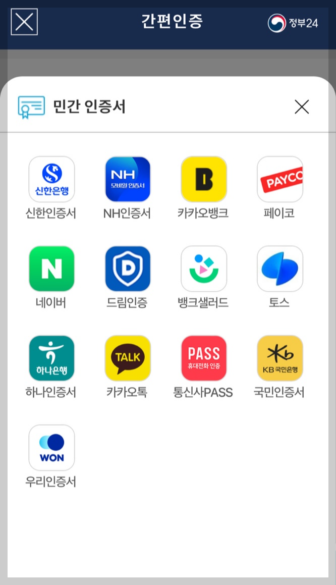 정부24앱을 들어가 보면 가장 첫 화면에 위와 같은 화면이 바로 나옵니다. 원활한 서비스를 위해 한시적으로 메인화면에 띄어주는 것 같아요!