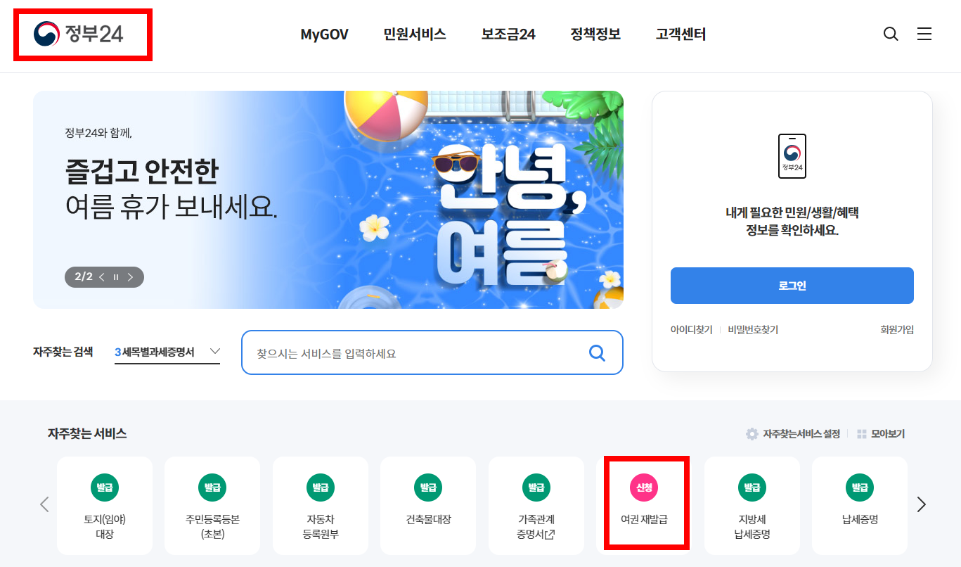 정부24 여권 재발급 온라인 신청 따라하기 시작합니다.