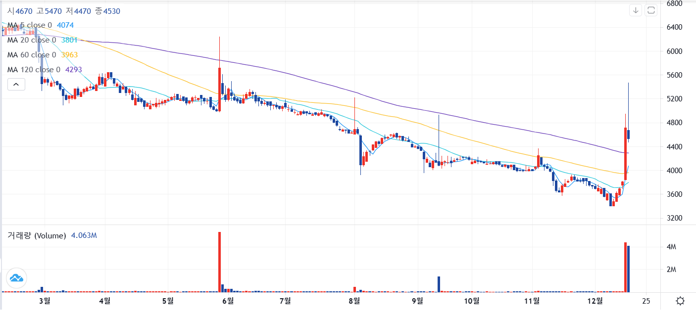 - 연계성: 창업자 이경조 대표가 우 의장과 같은 고등학교 출신이라는 학연에서 비롯된 테마주.