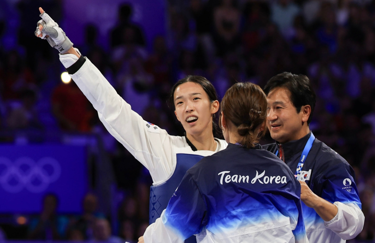 김유진은 8일(현지 시각) 프랑스 파리 그랑 팔레에서 열린 여자 57kg급 결승에서 세계 2위이자 작년 세계선수권 챔피언인 이란의 나히드 키야니찬데를 2대0(5-1, 9-0)으로 제압했습니다. 첫 라운드에서 김유진은 긴 다리로 얼굴을 노리고, 키야니찬데의 연속적인 감점으로 5-1로 승리를 거두었습니다. 두 번째 라운드에서도 김유진은 키야니찬데를 압박하며 9-0으로 승리, 금메달을 확정짓는 기쁨을 만끽했습니다.
