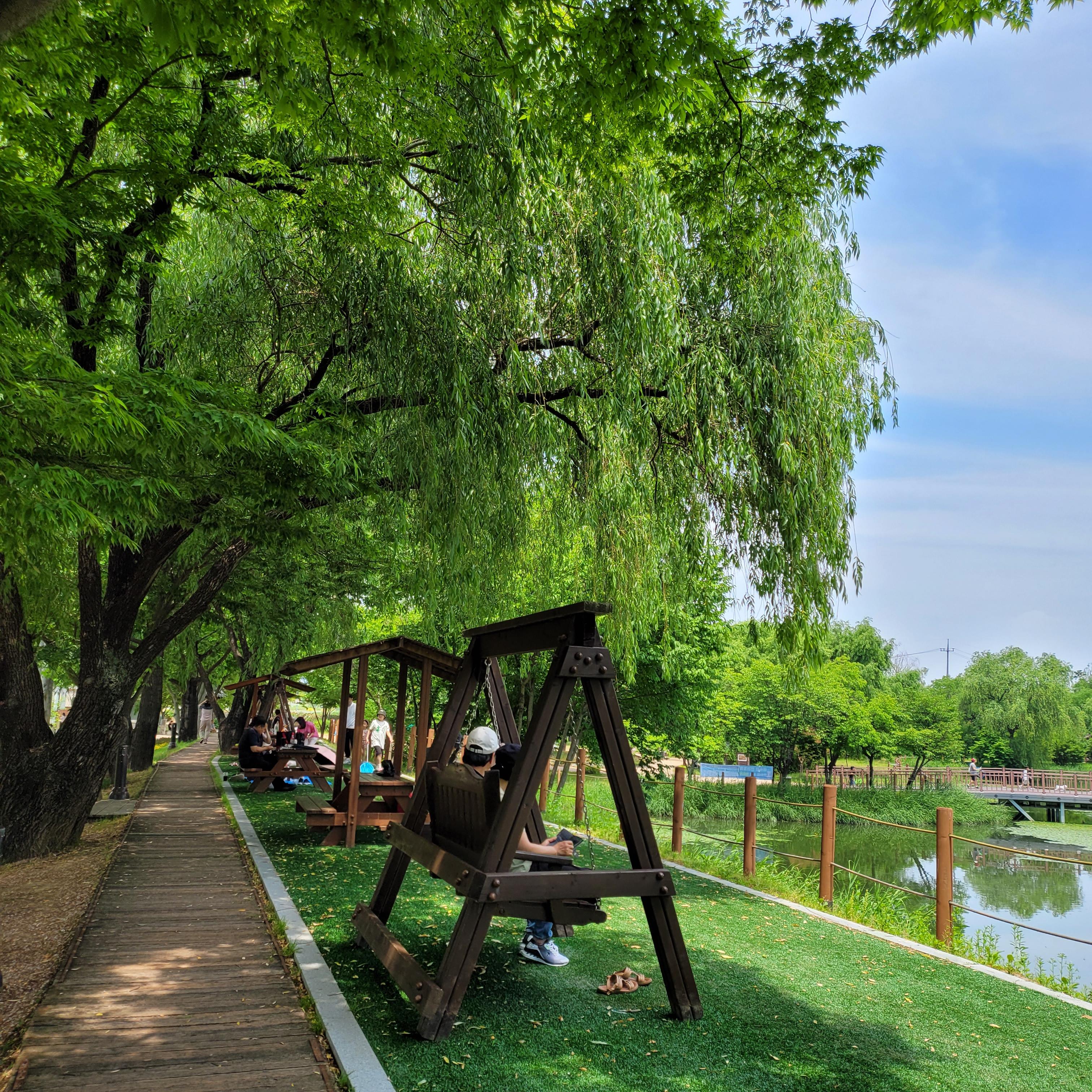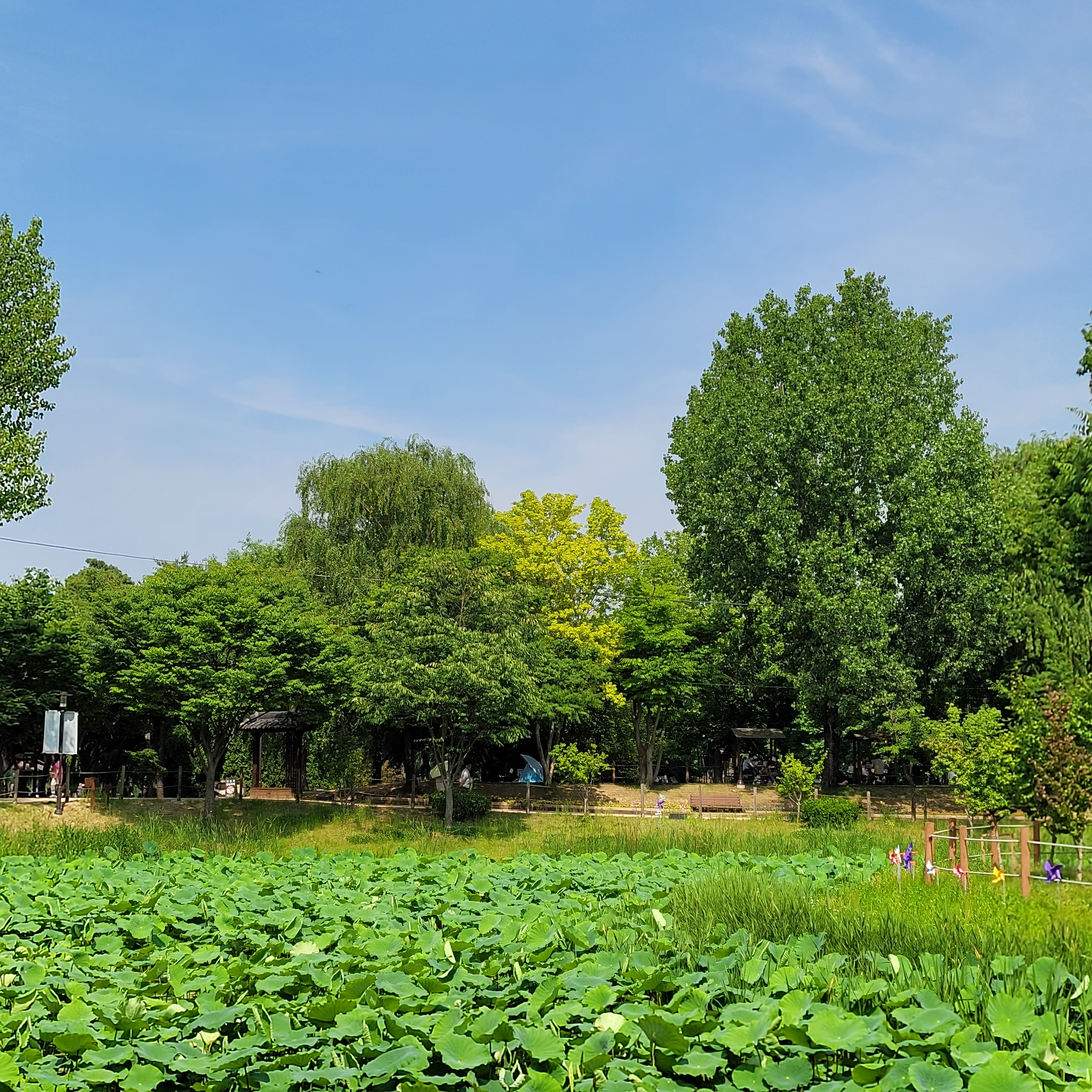 울창한 나무로 이루어진 숲에서 연꽃못을 바라보니 가슴이 뻥 뚫리며 그동안의 피로가 싹 날라갔습니다. 평택 소풍정원은 접근성이 매우 좋습니다. 수원 호매실에서 차로 약 30분 거리에 위치해 있어 나들이로 제격입니다.