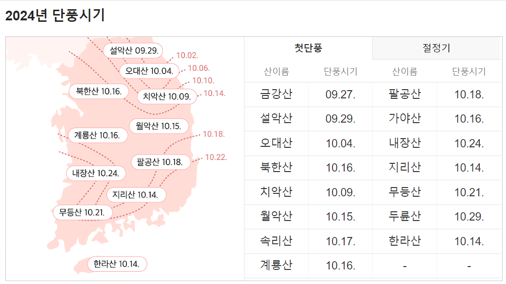 지리산과 남부지방에서는 10월 14~24일 사이에