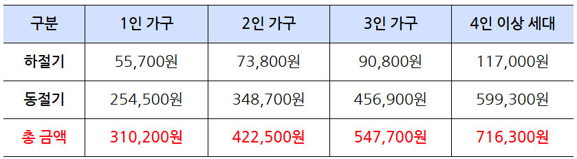 - 동절기 지원: 난방용 에너지원 구매 또는 요금 차감