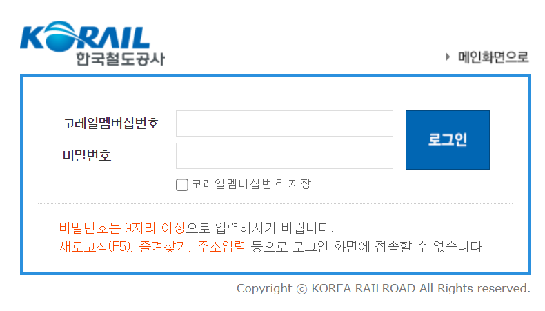 ● 회원가입: 코레일 홈페이지 또는 앱에 미리 회원가입하고 로그인 정보를 입력해 놓으세요.