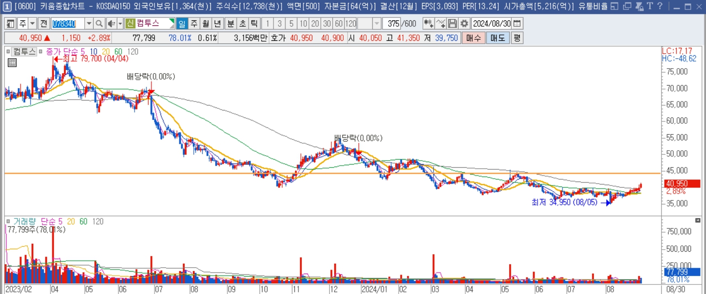 시가총액 : 약 795억 23년 매출액 : 535억 / 영업이익 : 42억